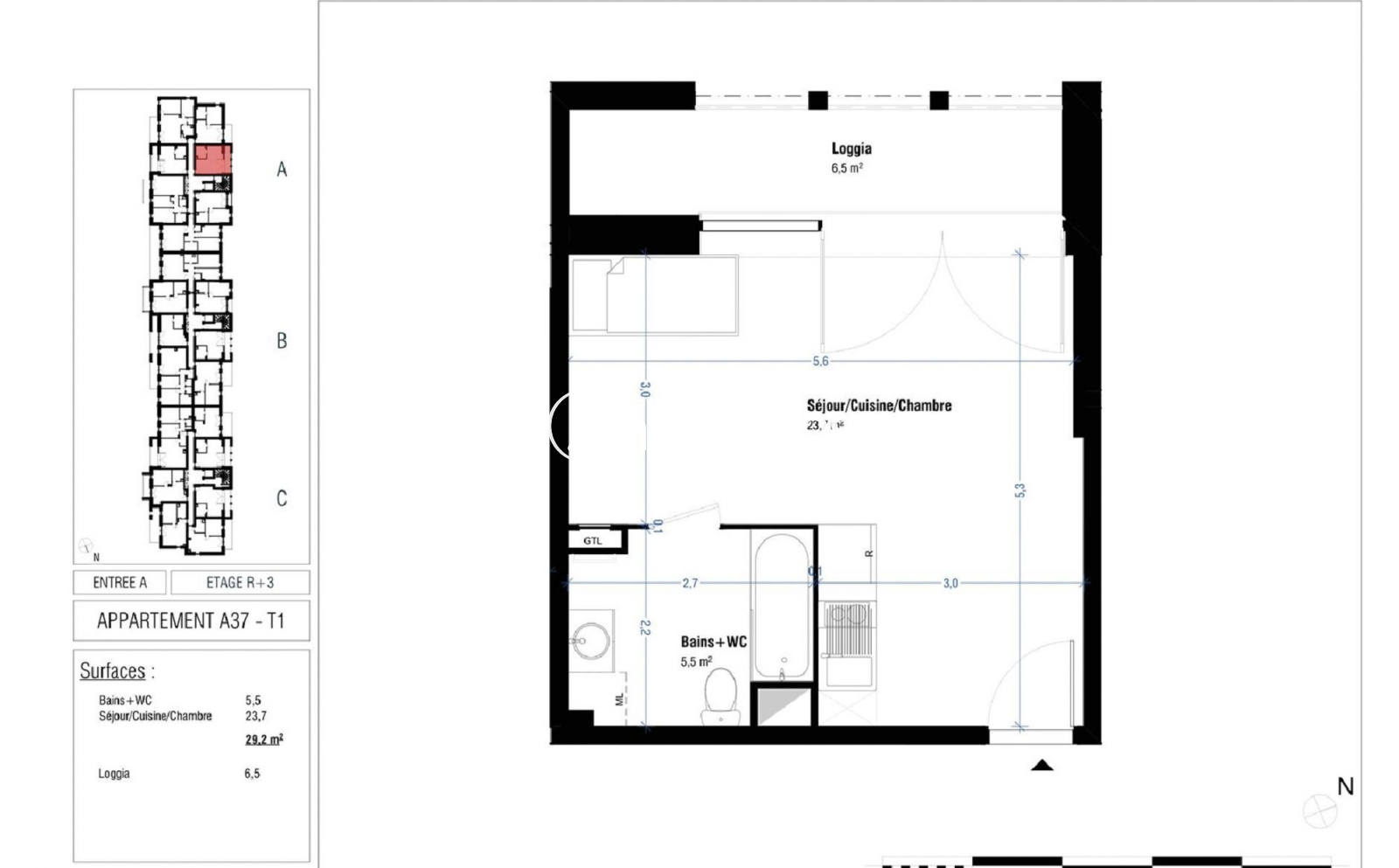LENS - Dans la Résidence LUMINESENS, nous vous proposons un appartement n°A37 de 29.2m². Situé au 3ème étage du bâtiment B avec ascenseur, il comprend : une pièce de vie de 23.7 m² avec espace cuisine, donnant sur une loggia de 6.5 m², et une salle de bains avec baignoire et WC. Au rez-de-chaussée, une place de stationnement n°23 est à votre disposition. Chauffage individuel électrique, et eau froide individuelle dont l'abonnement est à souscrire auprès de VEOLIA. Eau chaude collective. Entretien parties communes, ascenseur et espaces verts communs, compris dans les provisions sur charges mensuelles et donnant lieu à une régularisation annuelle. Les honoraires de location sont facturés directement au locataire par le partenaire pour 233€ TTC. Quant aux honoraires de rédaction des états des lieux, ils sont facturés par AFEDIM Gestion pour 87€ TTC, après réalisation, lors de l'entrée dans les lieux.