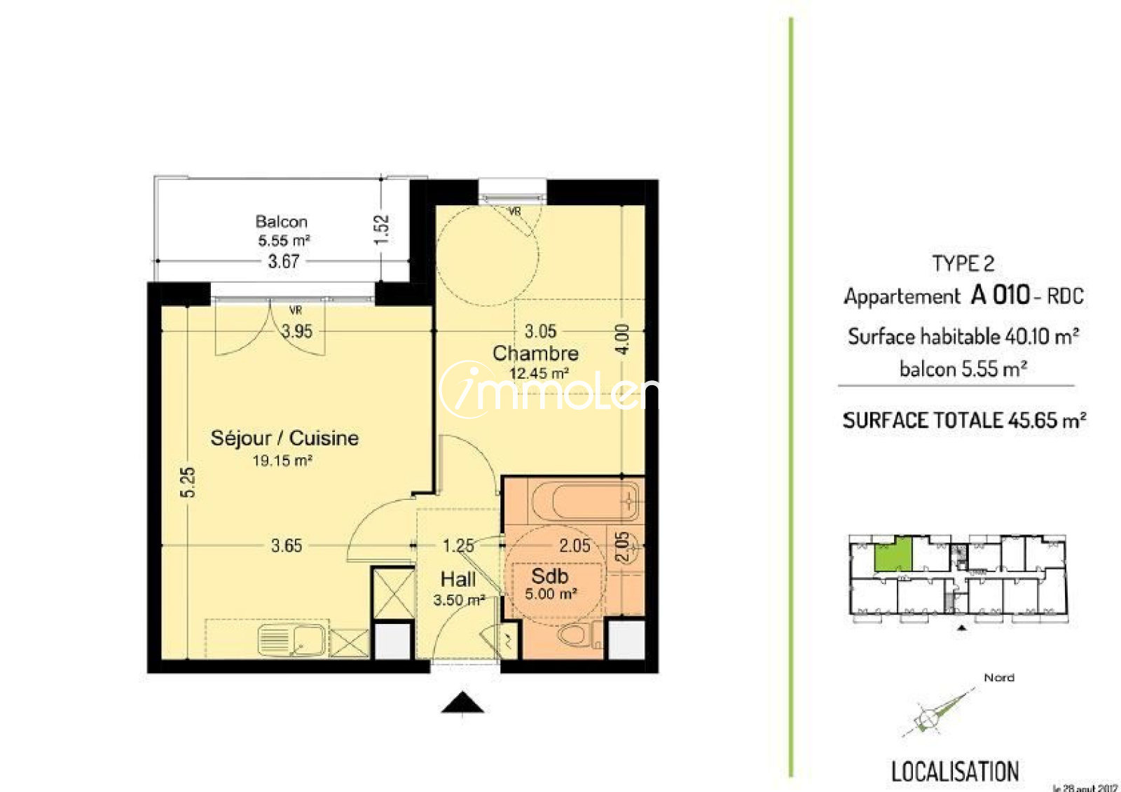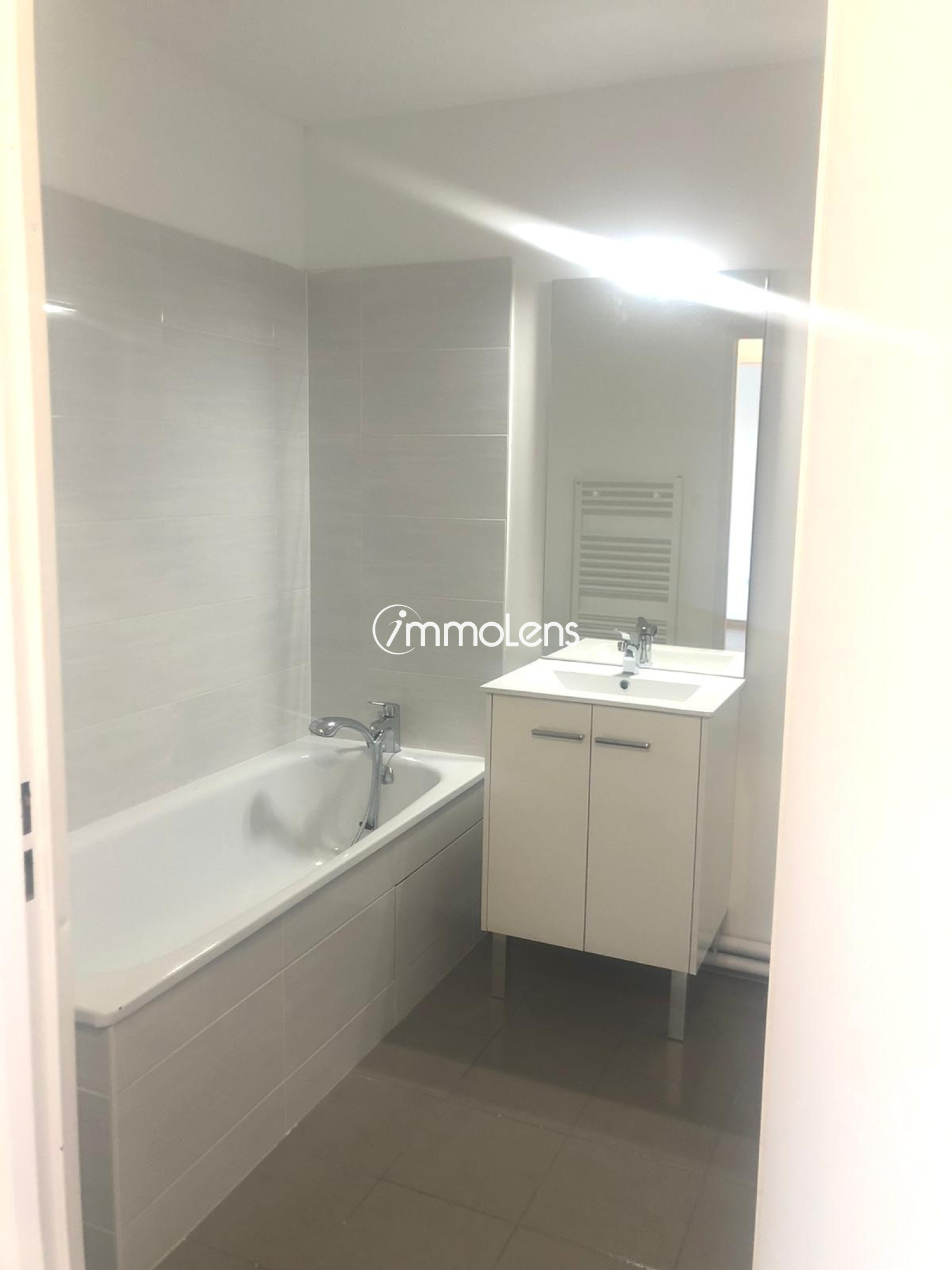 LENS. Située dans un nouvel écoquartier calme, à deux pas de l'hyper centre, du Parc de la Glissoire et des différents services (commerces, écoles, transports en commun), la résidence NEUVE LES JARDINS DE MONTGRE offre de nombreux avantages. Nous vous y proposons un appartement T2 n°A010 d'une superficie de 40,10 m2 au RDC, comprenant : Un hall d'entrée avec placard, un séjour d'environ 19 m2 avec cuisine équipée (four, four micro ondes, réfrigérateur, plaque et hotte) donnant sur un balcon de 5,55 m2 orienté Ouest, une salle de bain (baignoire, meuble vasque, WC). En parking souterrain, un emplacement de stationnement n°32. Eau chaude et chauffage individuel gaz. Eau froide, entretien parties communes, entretien ascenseur et espaces verts communs, compris dans les provisions sur charges mensuelles et donnant lieu à une régularisation annuelle.