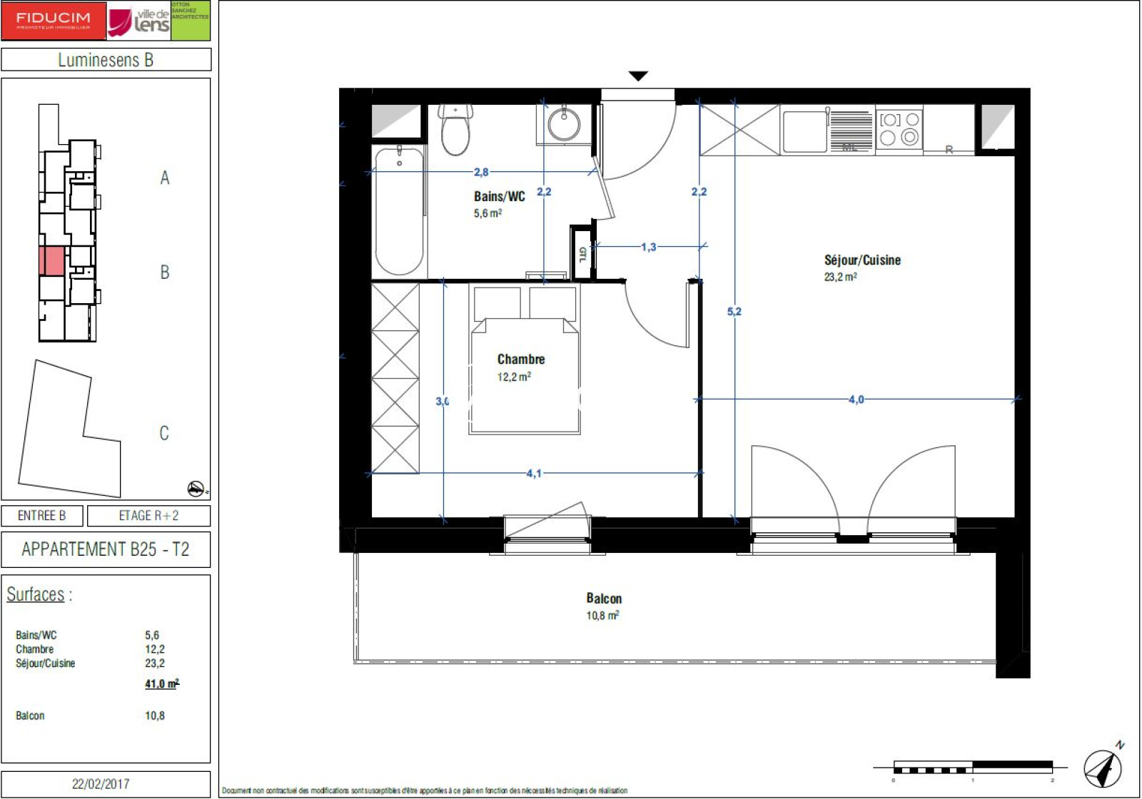 A LENS, à proximité des transports, de la faculté des sciences ainsi que du stade Jean Moulin, dans la résidence neuve " LUMINESENS" nous vous proposons un appartement de type T2 n° C302 de 40,20 m². Situé au 4ème étage avec ascenseur. Pièce de vie de 23m² avec espace cuisine équipée (plaques, four, hotte, plan de travail) donnant sur un balcon de 6m². une chambre de 11.6m². Salle d'eau avec douche, WC. Au sous-sol un parking n°4. Eau chaude et froide collectives, entretien parties communes, entretien ascenseur et espaces verts communs, compris dans les provisions sur charges mensuelles et donnant lieu à une régularisation annuelle. Les honoraires de location TTC (à la charge du locataire) incluent le montant de rédaction des états des lieux facturé pour 120,00 euros TTC, après réalisation lors de l'entrée dans les lieux