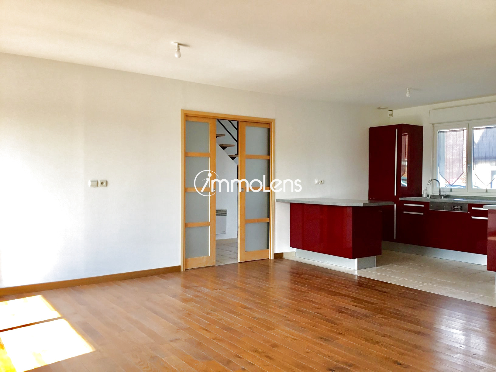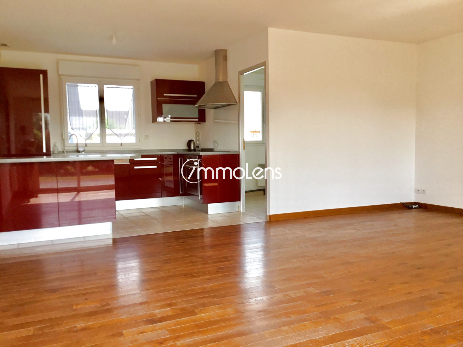Hénin Beaumont (62110) Maison individuelle de type semi plain pied composée au rdc d'un hall d'entrée, d'une cuisine équipée ouverte sur le vaste séjour donnant sur le jardin, d'un chambre,, d'une sdb, wc indépendant, à l'étage 2 chambres et un bureau ou dressing. Jardin, garage, parking disponible au premier août