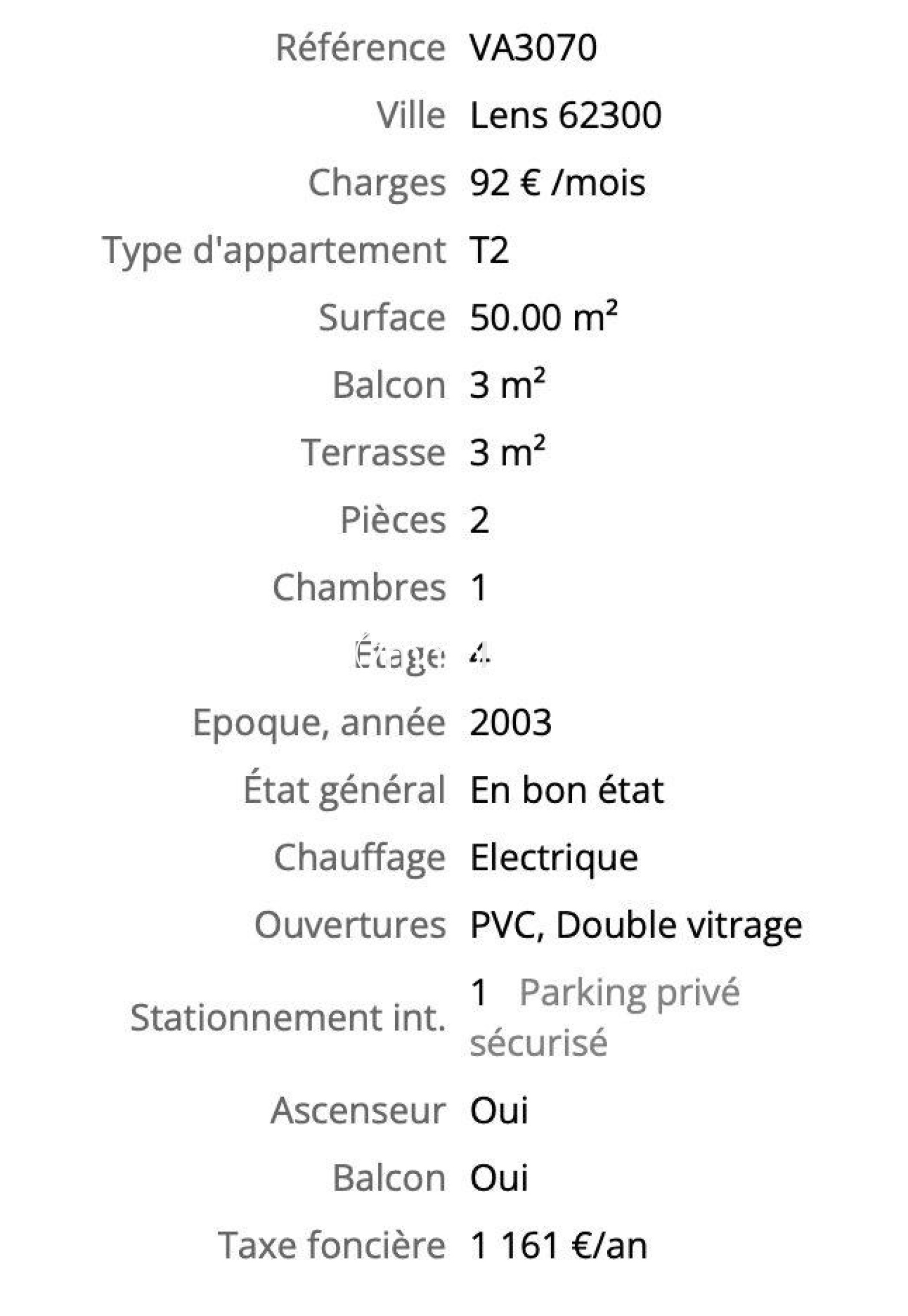Lens (62300) T2 Centre ville résidence sécurisée ascenseur balcon parking