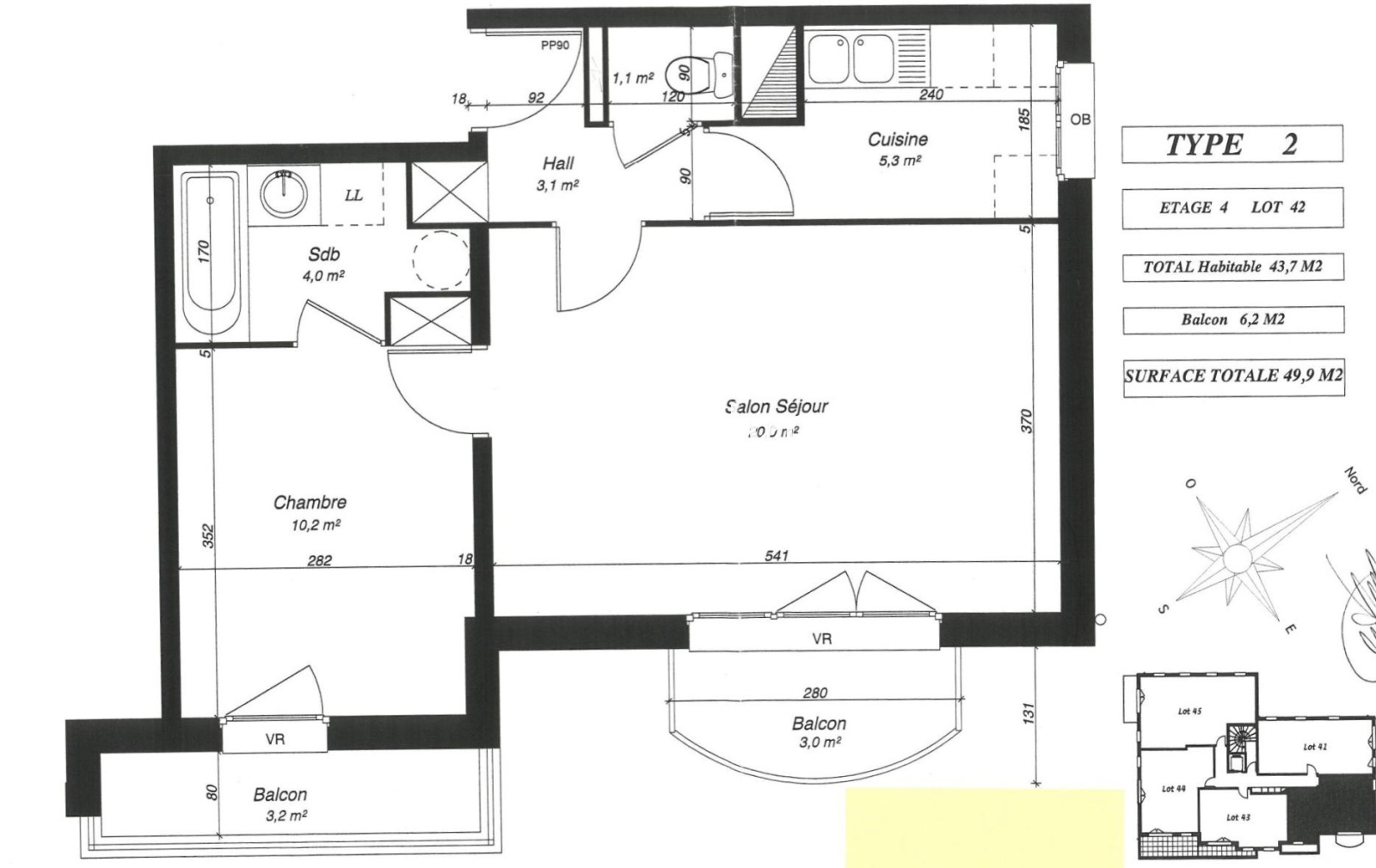 LENS centre ville, à 2 pas de l'hyper centre, au 4eme étage d'une résidence sécurisée, appartement de type 2 de 44m2 avec 2 balcons et place de parking privée. La résidence, sécurisée, à l'environnement arboré, possède un ascenseur.