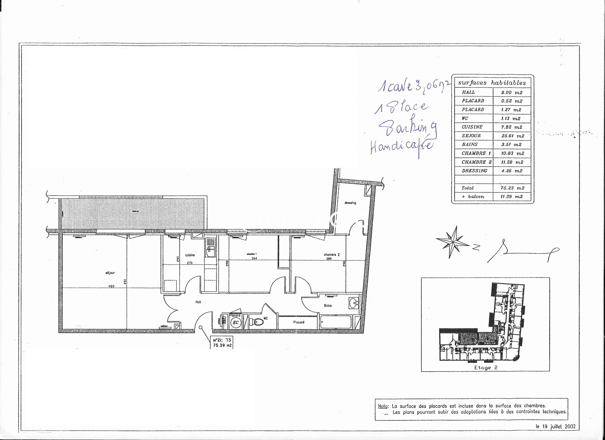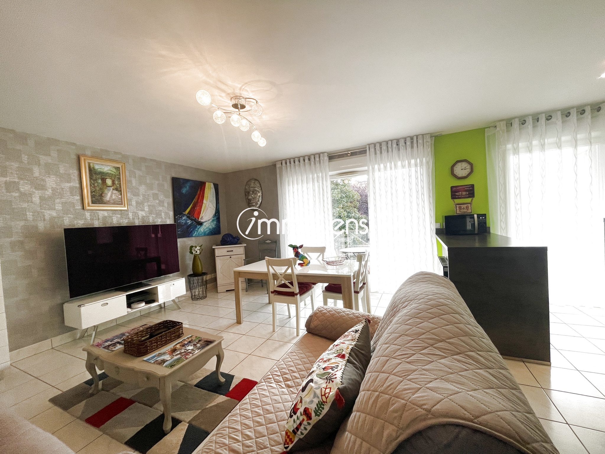 Ce T3 d'une surface de 75m2 se compose d'un hall d'entrée avec rangements, une cuisine aménagée et équipée ouverte sur le séjour, une sdb, et deux chambres dont une avec dressing.