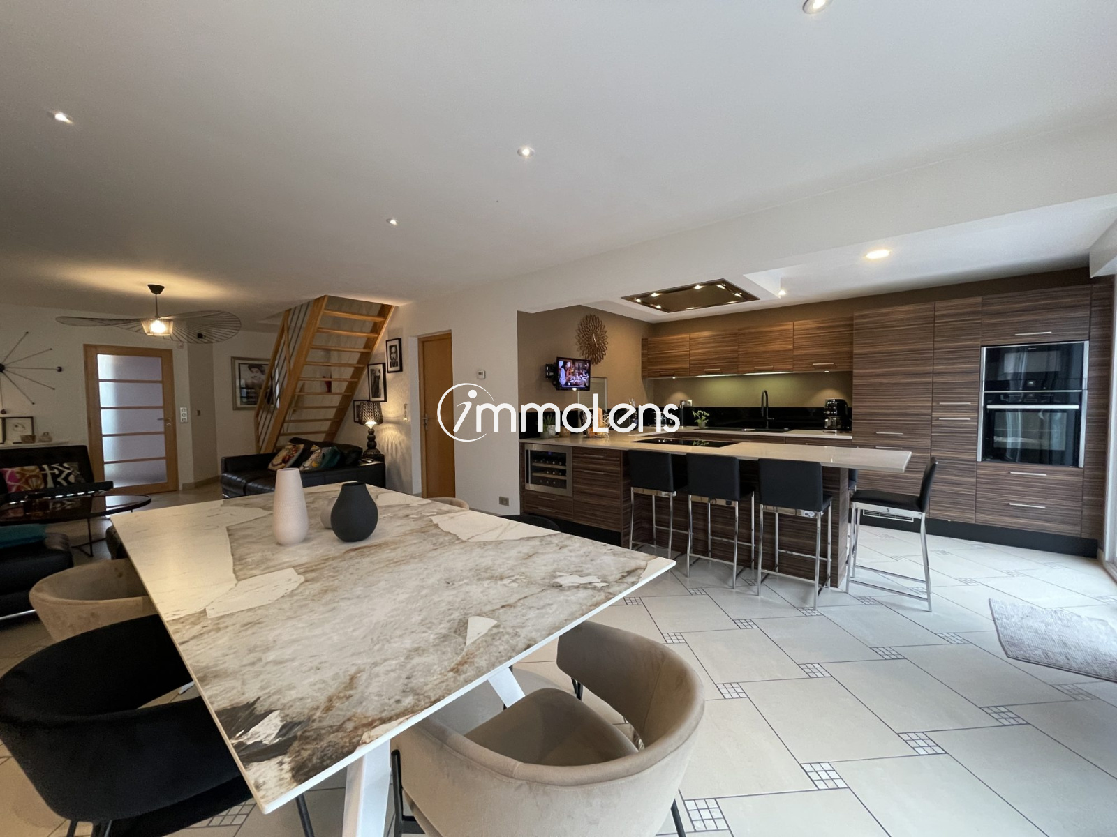 LENS, à deux pas du centre ville, dans un secteur calme, à proximité des commerces et des axes autoroutiers, coup de coeur pour cette magnifique maison de 2007. En parfait état, aucun travaux à prévoir. Elle se compose au rdc d'un hall d'entrée (wc indépendant + placards), d'une magnifique cuisine ouverte entièrement aménagée et équipée donnant sur le séjour et jardin, une buanderie - cellier donnant accès au garage. Au 1er étage, une sdb (baignoire balnéothérapie et douche italienne )3 chambres dont une suite parentale (dressing, douche italienne, lavabo). Au 2eme étage pallier pouvant faire office de bureau, une chambre + grenier aménageable. Jardin, garage, aire de stationnement D'autres photos et informations sur notre site