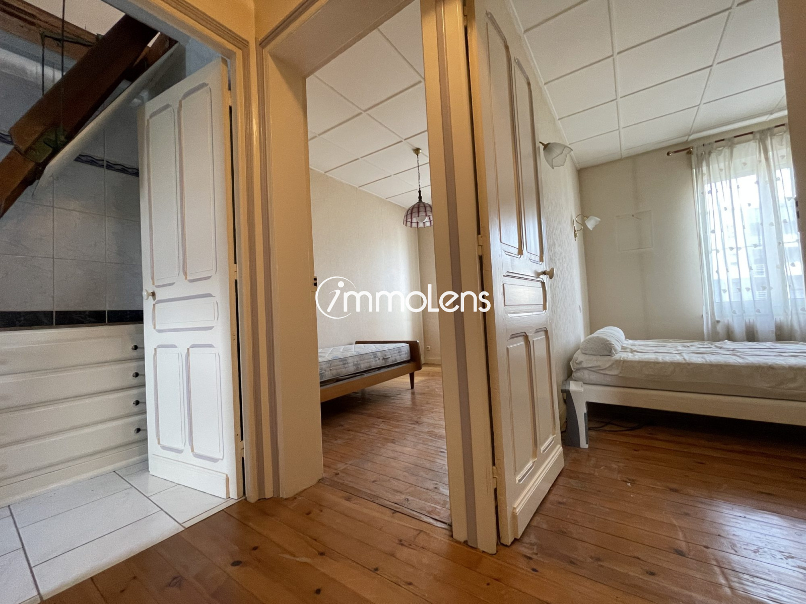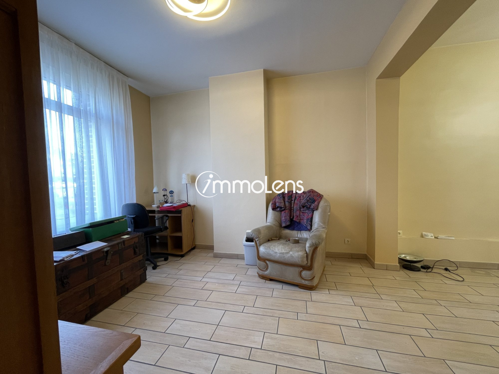 LENS centre ville maison de type 6, possibilité semi plain-pied composée au rdc d'un hall d'entrée, d'un séjour donnant sur le jardin, d'une cuisine aménagée et équipée indépendante, de deux salons dont un peut faire office de chambre et donc d'une maison semi-plain pied car une salle d'eau existe au rdc. Au 1er, 3 chambres et 1 sdb. Cave, chauffage central au gaz, terrasse et jardin. Très bon état, excellent DPE, possibilité 4 chambres, bien rare sur le marché. Plus d'informations sur notre site