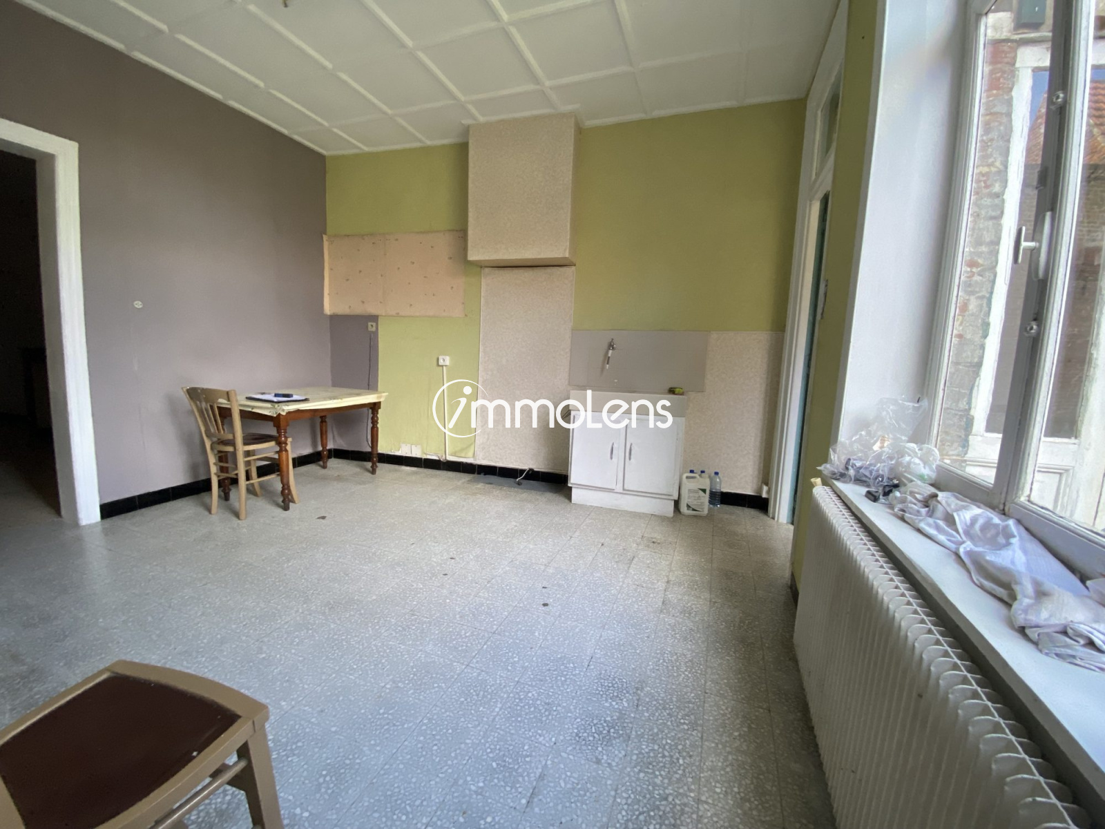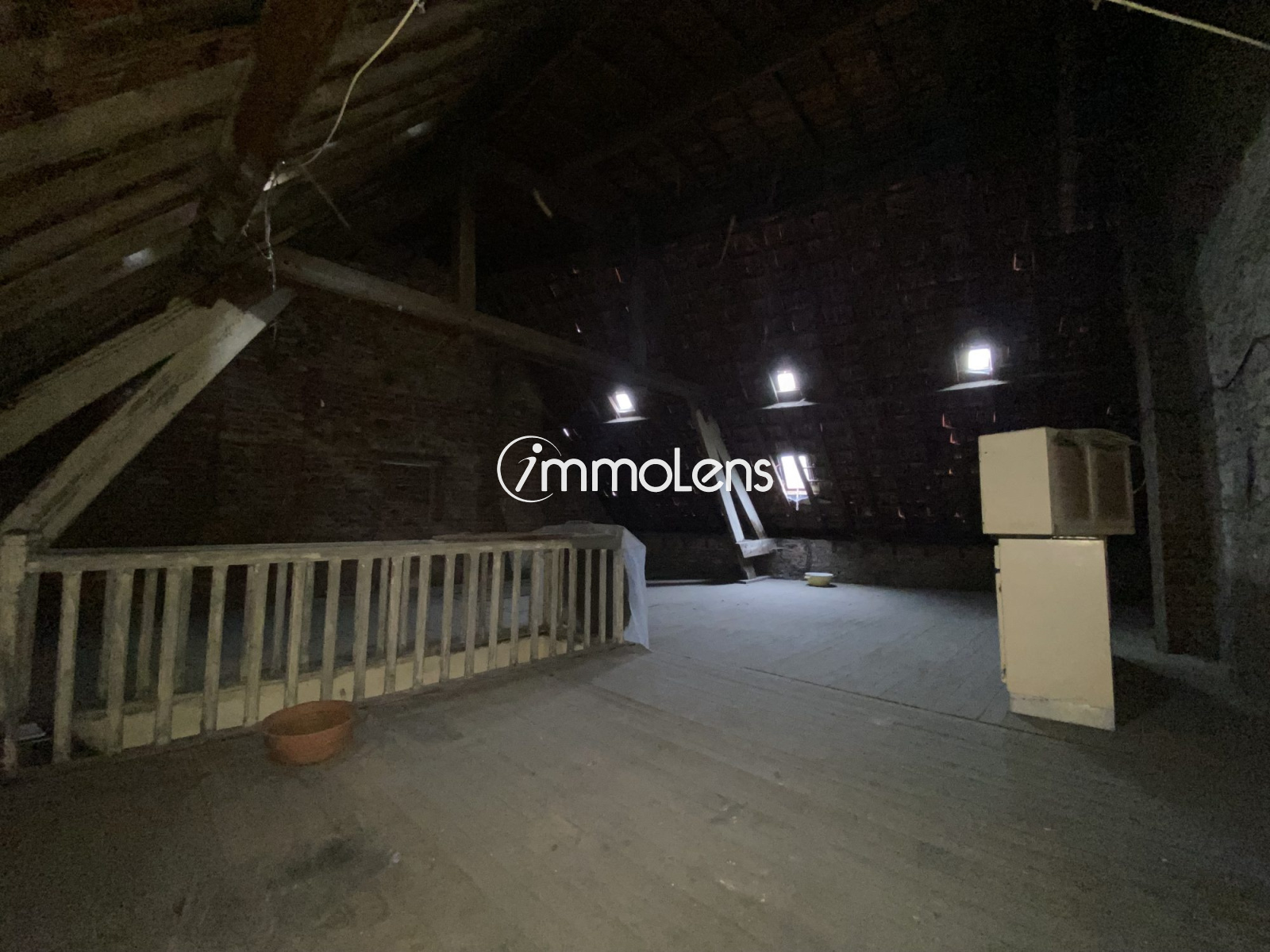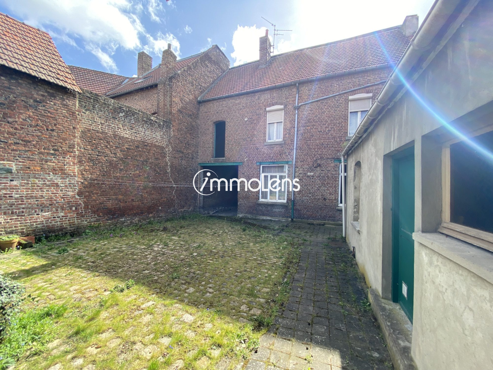 Immolens vous propose cette très grande maison de 130m² + combles aménageables + dépendances. Belle cour carrée pavée avec jardin. Très grand garage + 8 garages en location. Chauffage au fuel, travaux à prévoir (Electricité, menuiseries...) Faire vite !